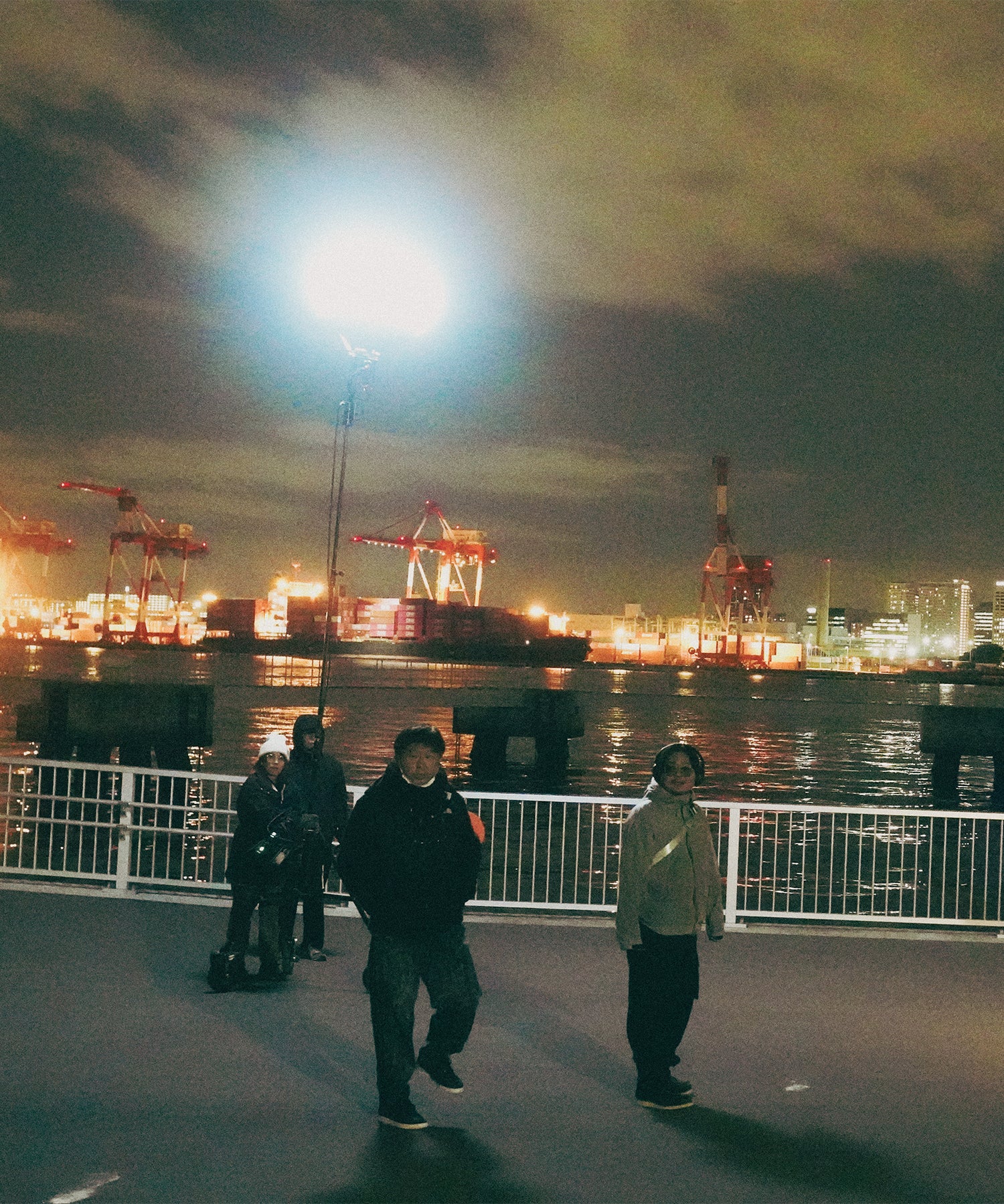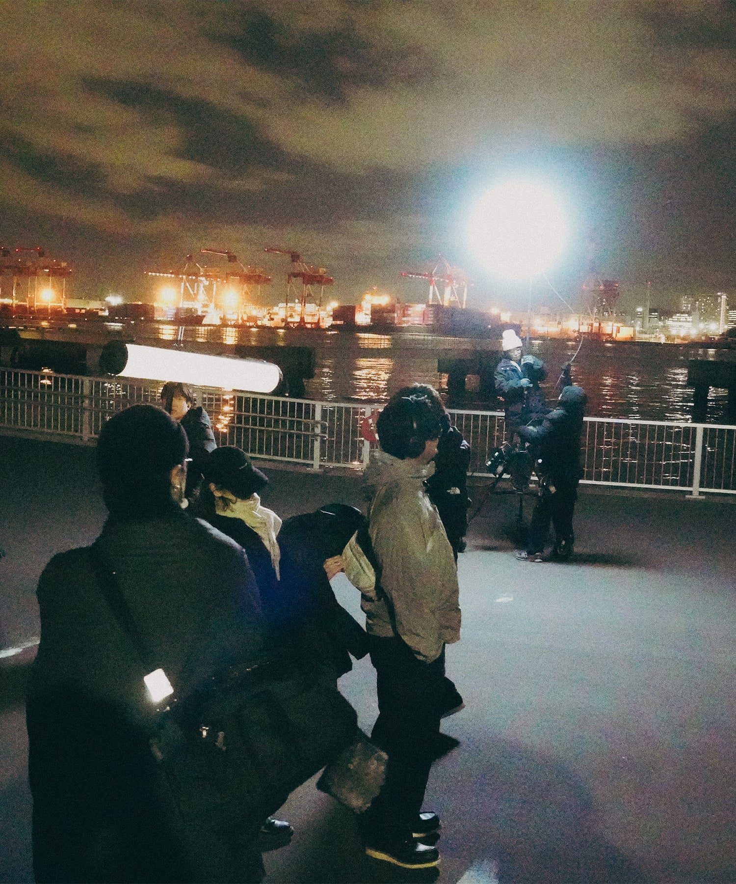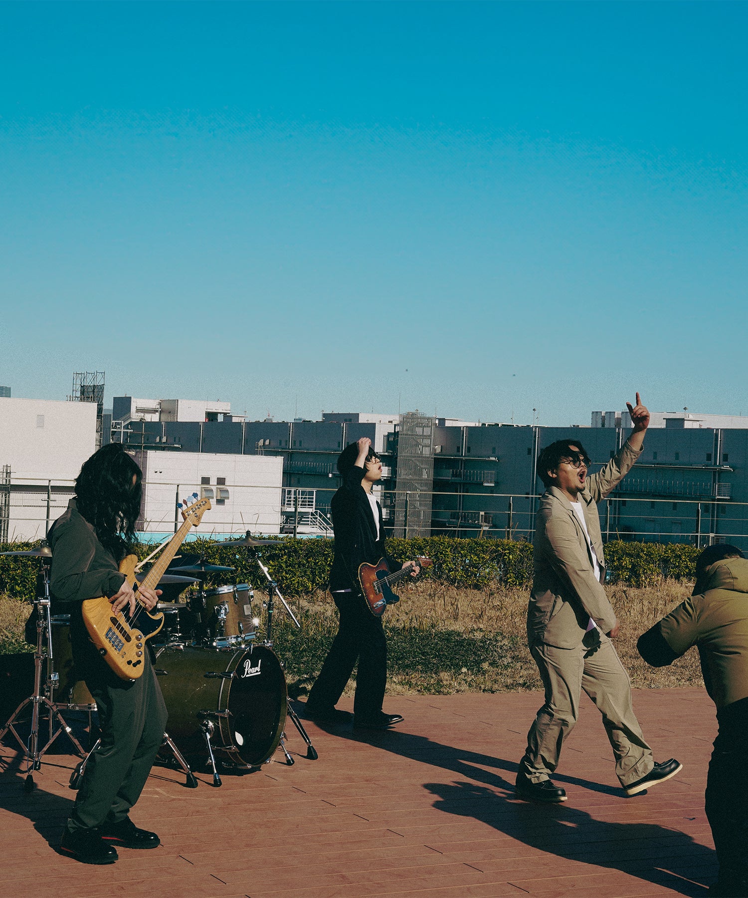 演奏シーンで使われている屋上が某ライダーシリーズの撮影で頻繁に使われている聖地らしい、という話を聞いてワクワクしながら撮影に臨みました。寒波襲来中で寒い中の撮影でしたが、聖地の演奏シーンだけは晴れ間で暖かかった気がします。