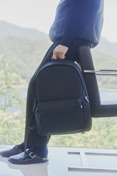 シンプルなデザインはそのままに、外から見えにくいフロント上部にトップポケット、両サイドにスマートフォンやパスケースを出し入れしやすいオープンポケットとファスナーポケットをそれぞれ配置しました。