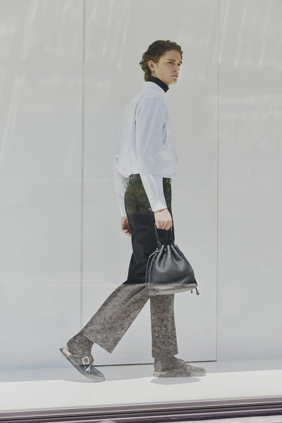 巾着タイプにありがちな「中身の取り出しにくさ」を解消するため、片側に中へ直接アクセスできるサイドファスナーを採用しました。反対側ファスナーはポケットとしても使える実用的な仕様です。