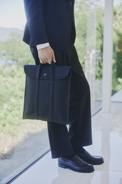 ハンドル付きのデザインは、ビジネスシーンやPCの持ち運びに適したラップトップバッグとしてもおすすめ。